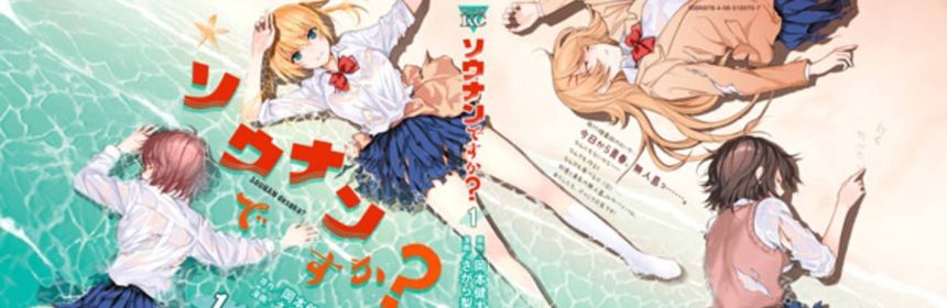 - Synopsis: “Because of a plane crash … starting today, we’re spending the springtime of our lives on a desert island!! There’s nothing here, so we have to make everything!! And eat everything!! (Ugh!) Check out our high-school-girl survival story of courage and knowledge. We’re actually doing pretty well! We learn how to eat cicadas, how to build traps, a simple allergy test, how to eat hermit crabs, etc.” – Sounan Desu ka? (manga)
