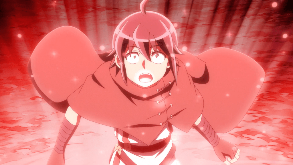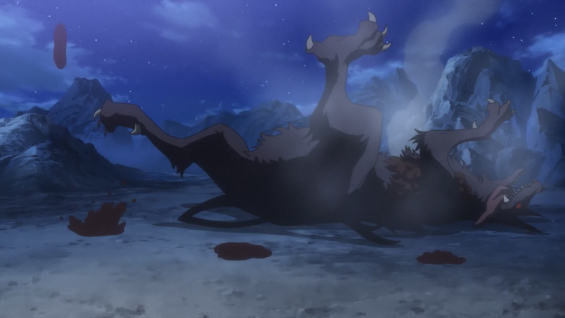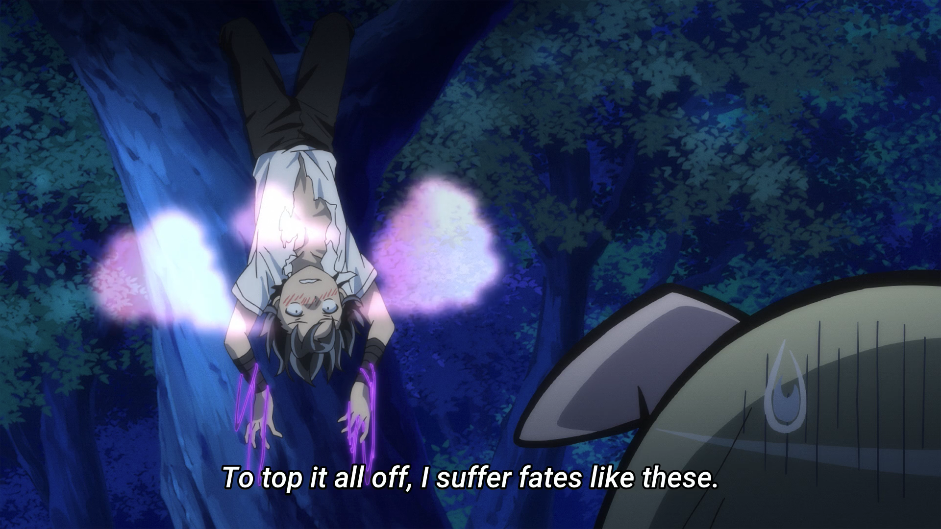 Tsukuyomi-sama did mention that Makoto would be strong since his magic powers and physical body were under considerable strain in his old world, but this is ridiculous! Being able to kick a monsters head off is completely absurd but at the same time it’s also comedic! His reaction to the gorey mess that he left behind makes it even better!