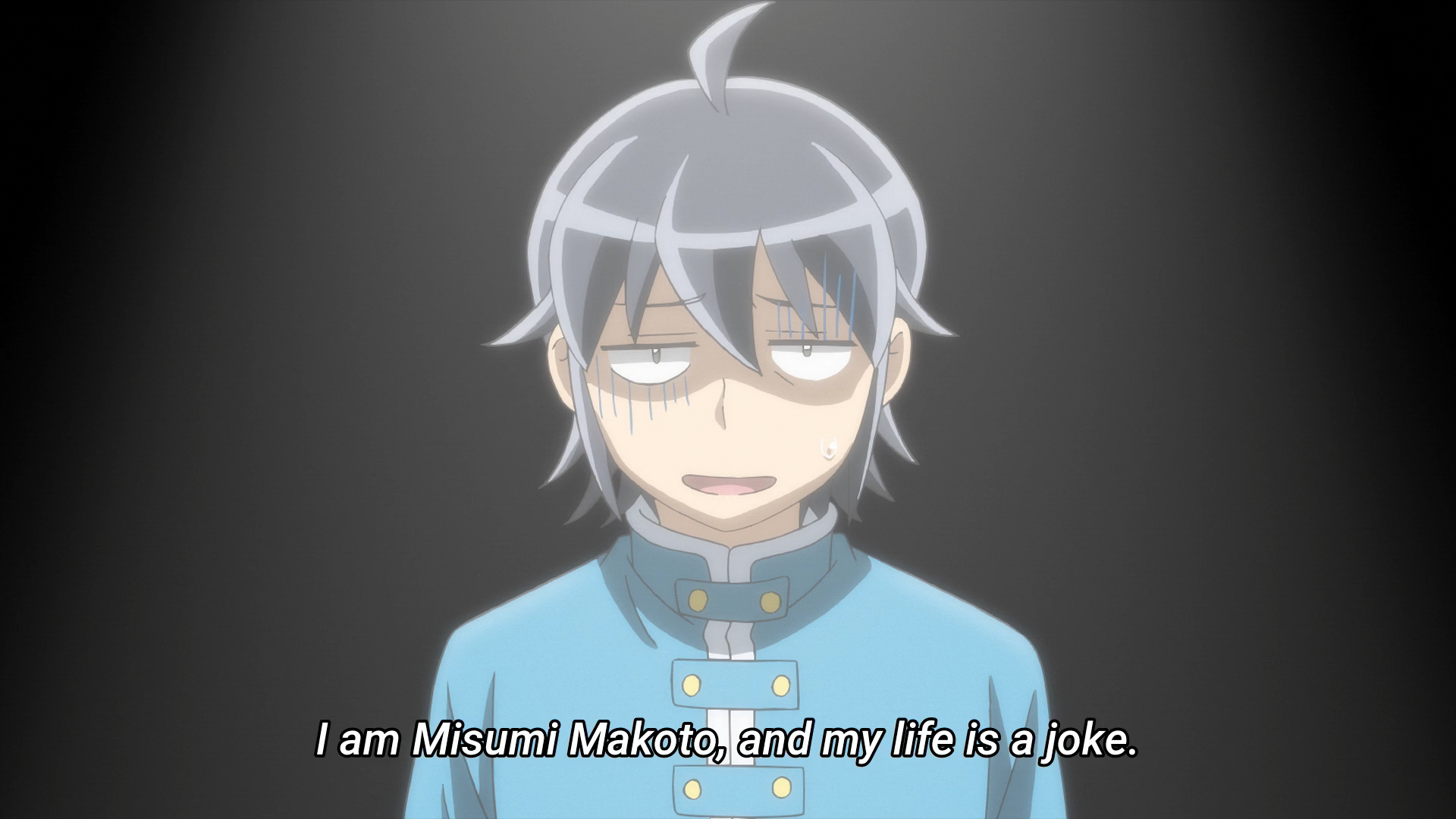 It hasn’t even been 5 minutes and I’m already on the floor laughing! The jab at the Isekai genre was great but then the “I am Misumi Makoto, and my life is a joke” line took me out! The last time I laughed this hard was when I watched KonoSuba for the first time! Mob characters aside, the artwork is pretty slick and I love Makoto’s expressions throughout this funny montage lol.