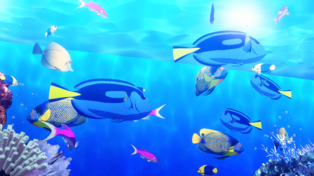 I love the attention to detail when it comes to not only the backgrounds but also the aquatic life that is presented throughout the show. From the iconic Blue Tang (Dory from Finding Nemo) to the colorful wrasse, different types of butterfly fish, and even puffer fish! The coral are also depicted accurately and it just gets me really excited because I kinda have an obsession with aquatic life and especially aquariums!
