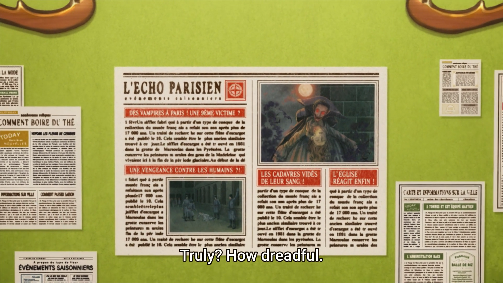 While we’re on the topic of background, let’s take a moment to appreciate the depth and quality of the spaces within Vanitas no Carte! As the story takes place around Paris you can expect a large number of French landmarks (the opening alone features quite a bit!). The French architecture is a crucial and important detail in really creating that European setting and it’s breath taking!