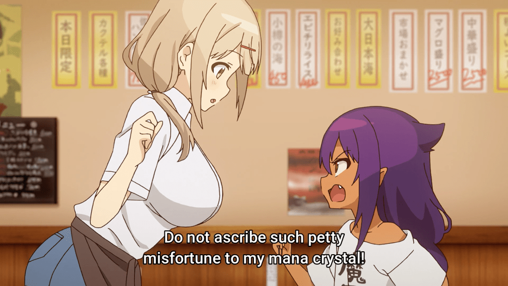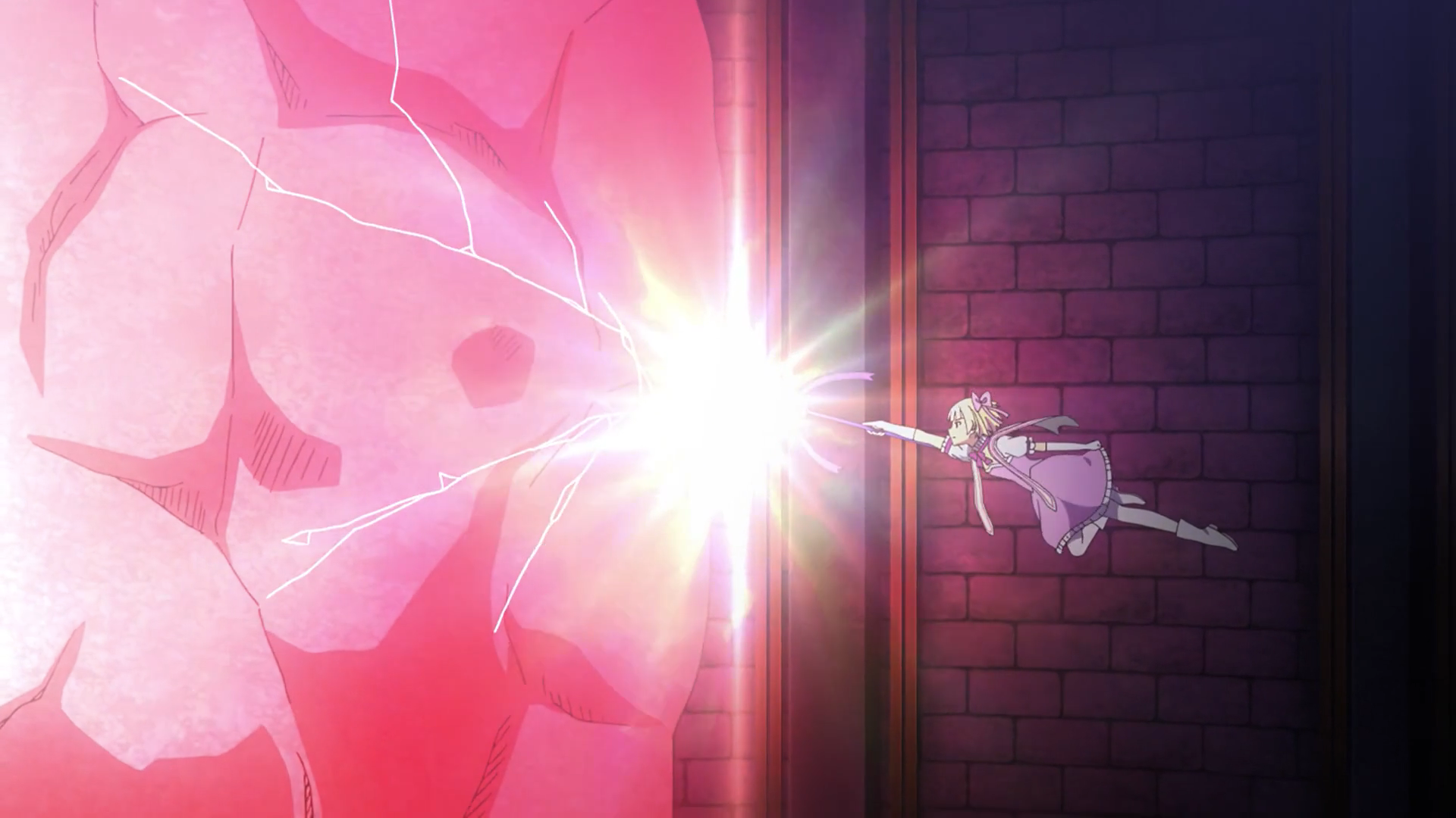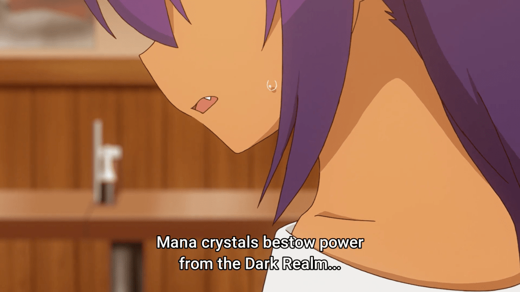 Wait hold on a minute…the antagonist of the show…is a magical girl?! I was fully expecting a human hero of sorts but not a magical girl! I guess we’ve seen the magical girl and demon dynamic in Machikado Mazoku…but it was caught me off guard! And she totally ignored Jahy and destroyed her Mana Crystal! If every “hero” in the story did this, we’d probably have pretty bland stories LOL.