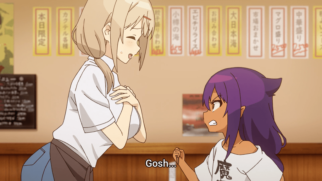 The best part about this show is seeing all of Jahy’s reactions! The sheer panic in her eyes when it finally hits her had me rolling on the floor! Let’s not forget the dead fish eyes right before the reaction either! The comedic timing of the show with the amazing talent of Oozora Naomi (also voiced Satania and Uzaki!) to really make this an enjoyable watch. And while I’m on the topic of voice actors…Jahy has quite the star studded cast which Kayano Ai, Hanazawa Kana, Uesaka Sumire, Hikasa Yoko, Komatsu Mikako, and Ogura Yui!