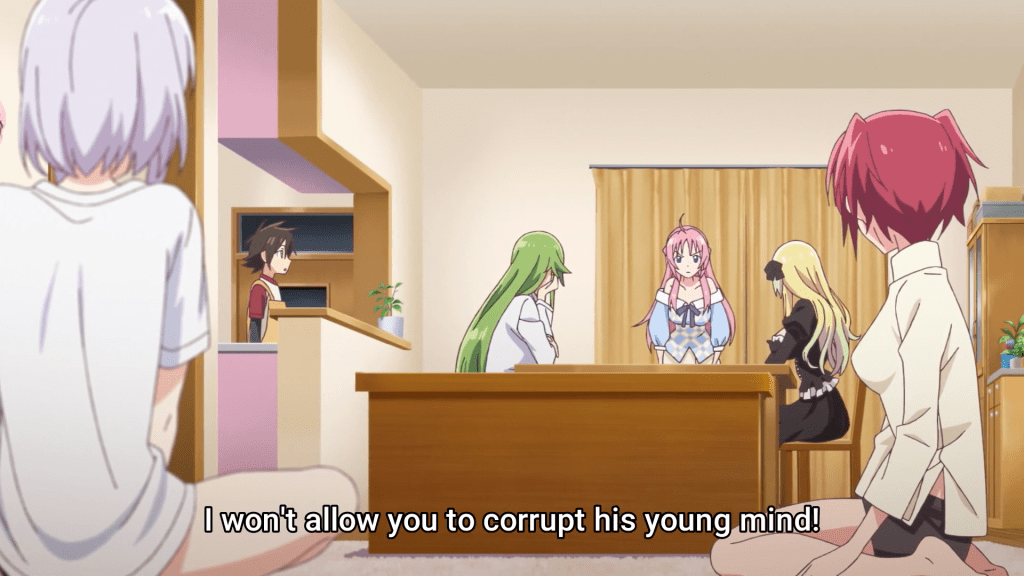Ecchi genre veterans know exactly about the infamous ways of censorships like the rays of light, the thick steam, and even the dark shadows! But have you seen Mr. Fuki Mamoru!? A hilarious play on censorship from the author let the characters take it into their own hands. While Atena is indeed protecting Koushi innocent eyes…Atena is only one person! There is an UNCENSORED version out there for those who are curious and if you don’t know what means…this anime probably isn’t for you!