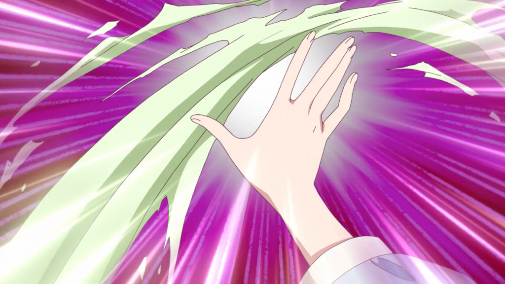 Now Frey is an avid cosplayer and you can pretty much see her extremities through slides above. The combination of chibi artwork to retell her story as well as Koushi’s straight man response really made this scene bright and fun. The contrast between the really detail orientated scenes earlier and this one is a nice break point between more serious interactions between the characters and the more silly ones.