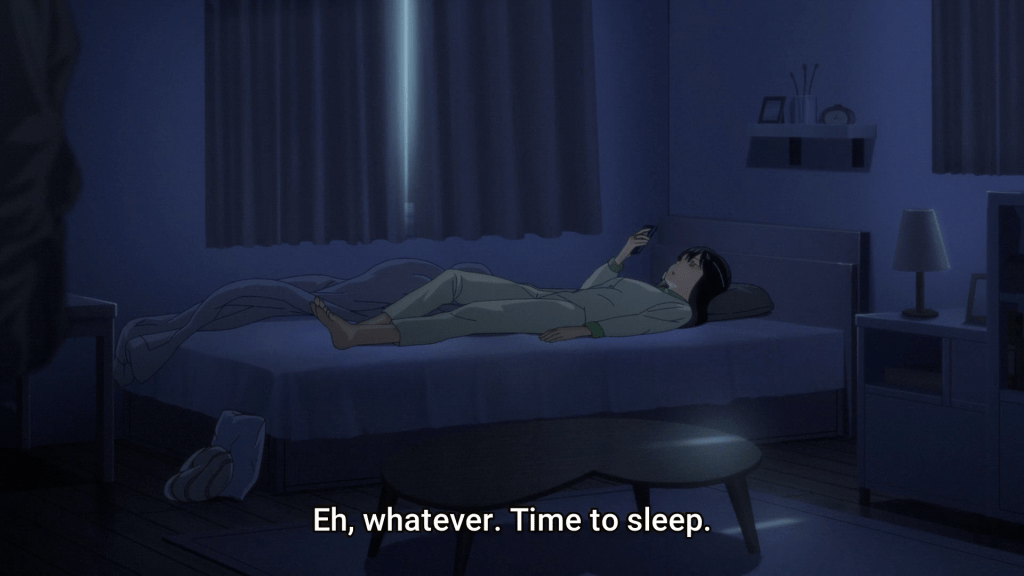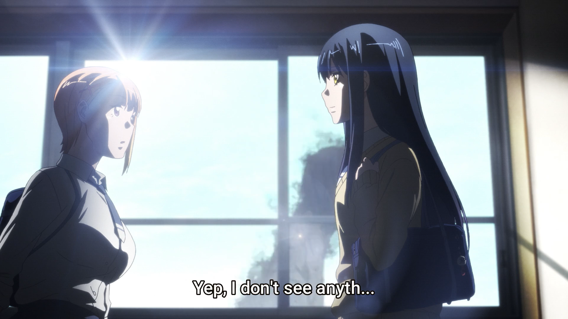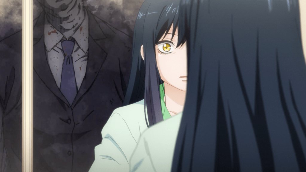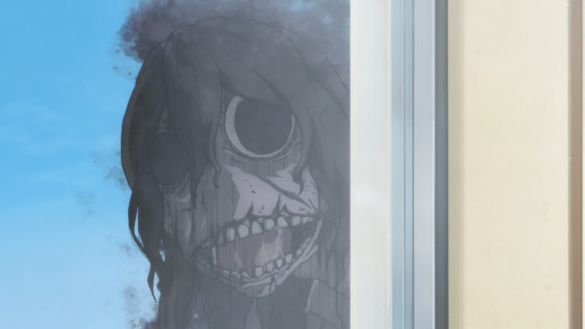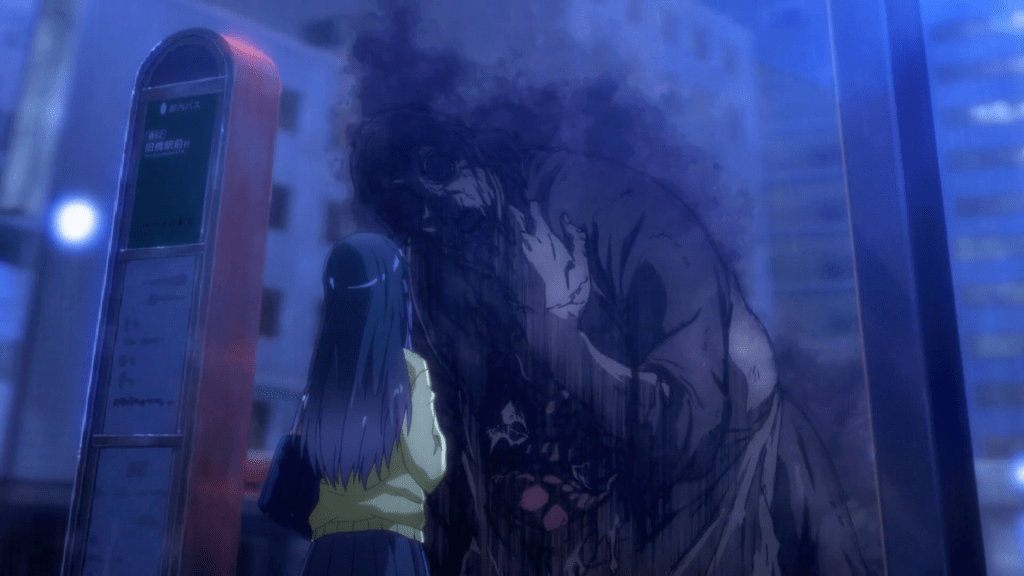 Composition is EVERYTHING with this show. The positioning and timing of elements in the scene can really make or break the fear factor! And I have to say, it’s brilliant. Each scene is so well thought out, like when Miko peaks out towards the hallway and it’s hard to see anything but her and the light source from the classroom to emphasize the atmosphere of the empty school or the shot of her being face to face with the bus stop monsters which shows both Miko, the monster, and the bus stop sign to establish the scale of just how big and terrifying the phantom is.