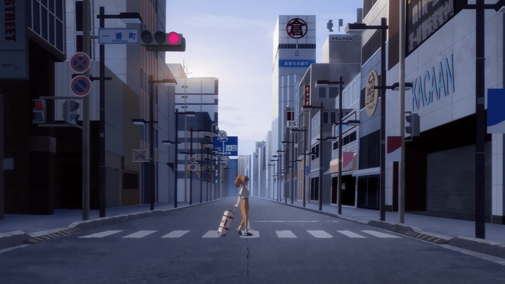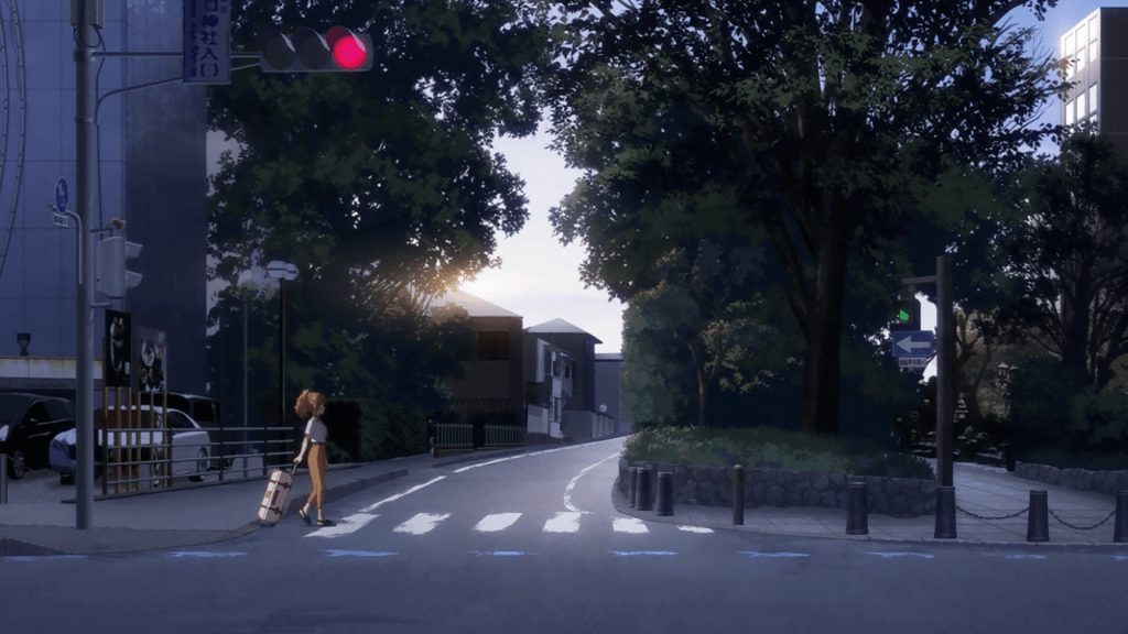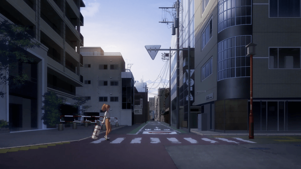 Ok, I know you’re tiring of my screaming about backgrounds but check this out! So cool to see the streets of Saitama as Suzune make her way to the studio.