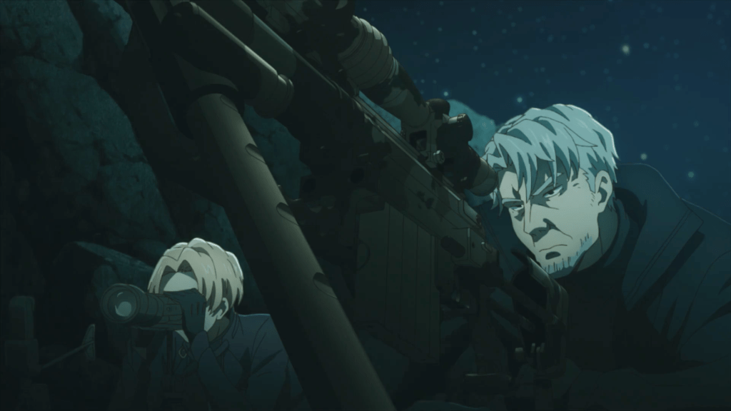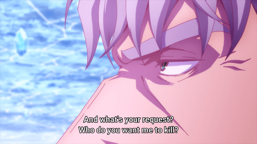 Speaking of looking nice…Lugh, our main protagonist, went through quite a change! I was surprised that he didn’t look that different from his “isekai” version, as I like to call it. The later half of the episode goes into detail about Lugh’s previous life as the world’s best assassin and in particular, his last mission before retiring and becoming an assassination instructor.