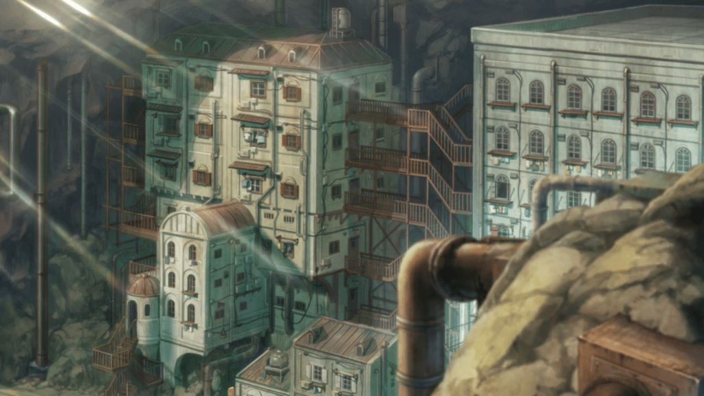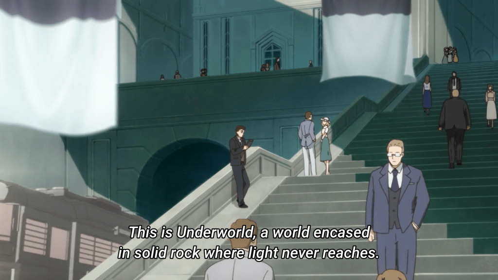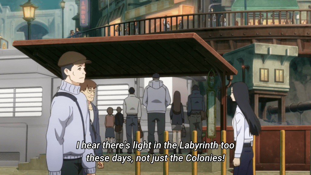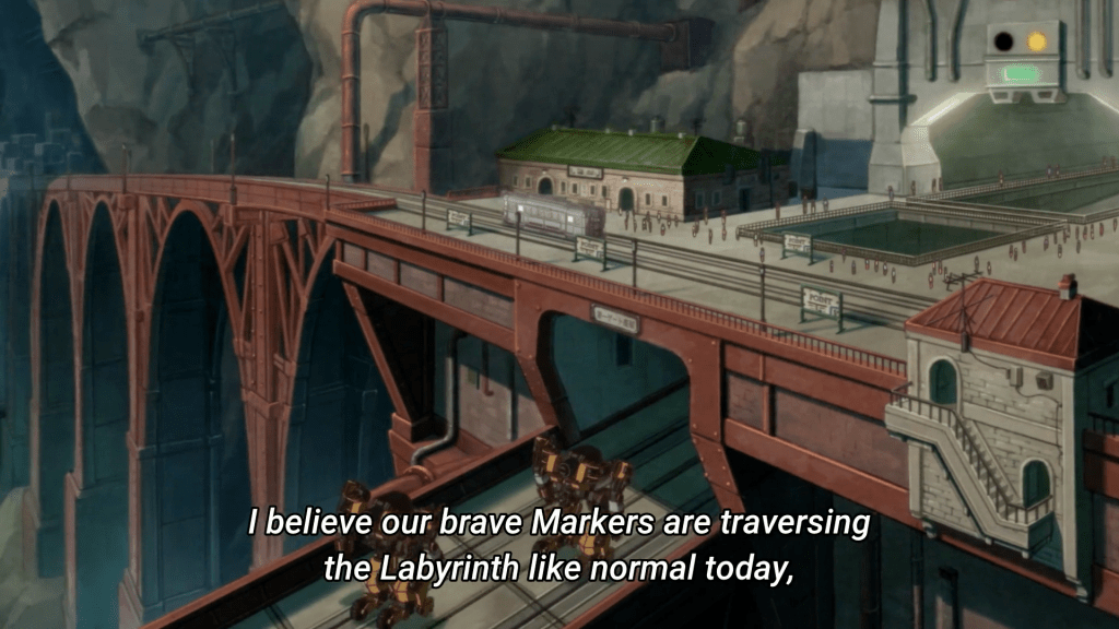 Like I said above, Sakugan takes place in an underground city. A radio show that our characters listen to gives us a casual breakdown of how society works, from describing the state of the city to the dangers that lurk beyond! We know that this is a colony and that within the underground there are other colonies that are all linked by the “labyrinth” which are areas that need to be navigated by explorers known as “Markers”. Within the labyrinth are endless dangers, such as terrorists and kaiju! I wonder what the kaiju look like, and if a random Ultraman or Godzilla will make an appearance in the show lol.